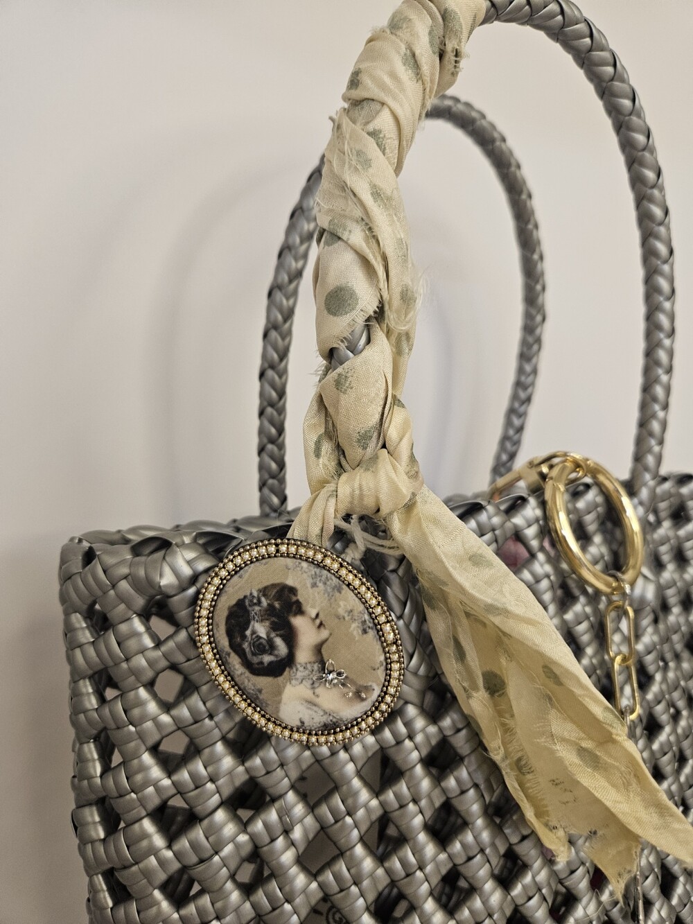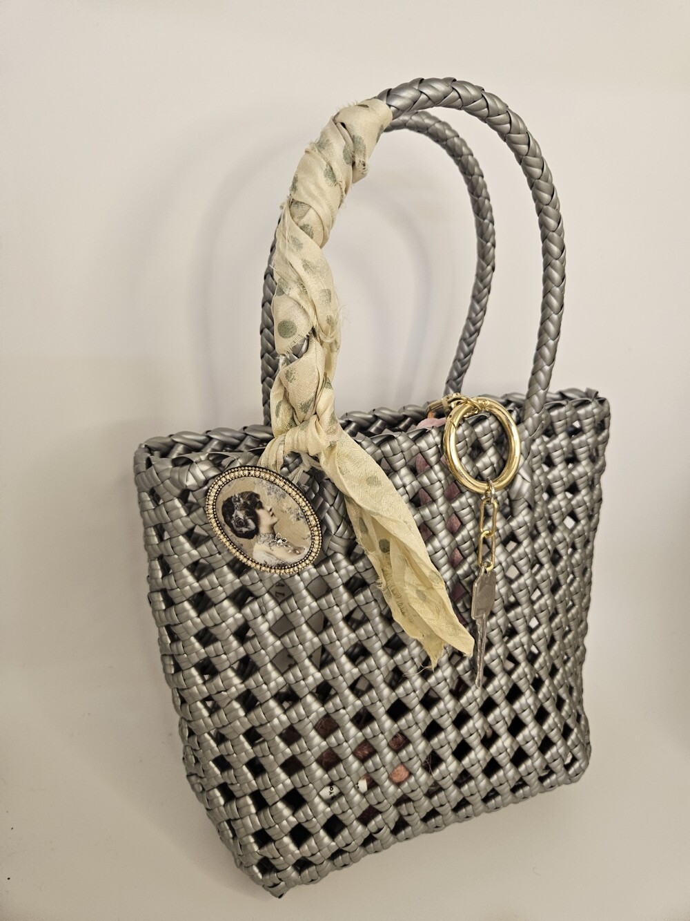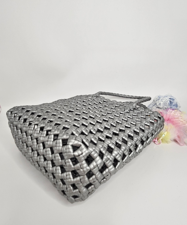발리에서 온 수공예 감성여름을 즐기고 싶은 당신을 위한 은회색 PVC 토드백라탄 스타일로 엮인 짜임은 자연스러운 멋과 세련된 느낌을 선사합니다.