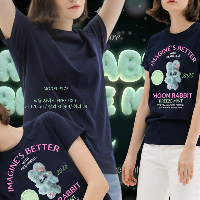 브리즈민트 T-shirt (Navy) 브리즈민트 데이지 얼굴 새틴 스크런치 증정