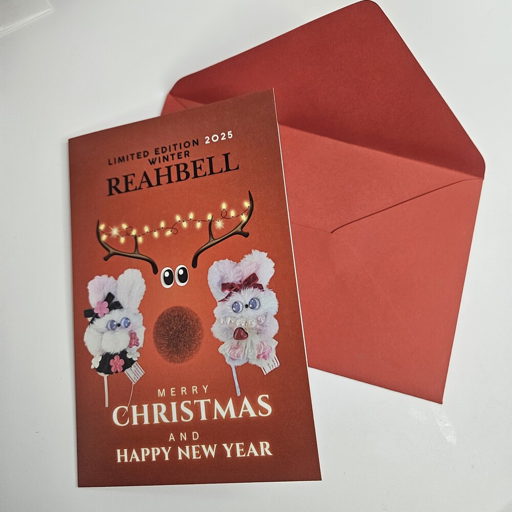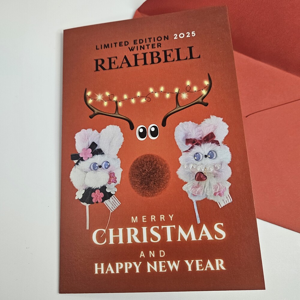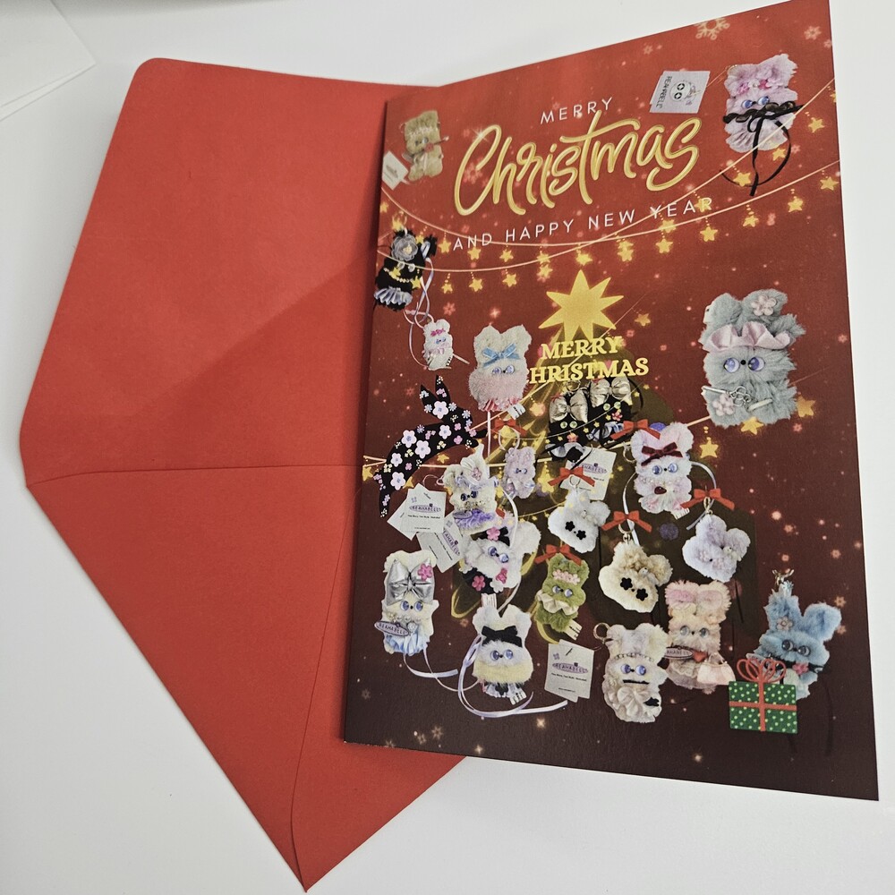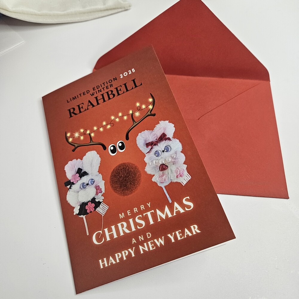 1. 래하벨 크리스마스 에디션 인형 사진 카드 2.래하벨 인형 모음 크리스마스 트리 사진 카드 디자인은 2종으로 원하는 디자인을 옵션에서 선택해 주세요. 속지가 없는 카드입니다.