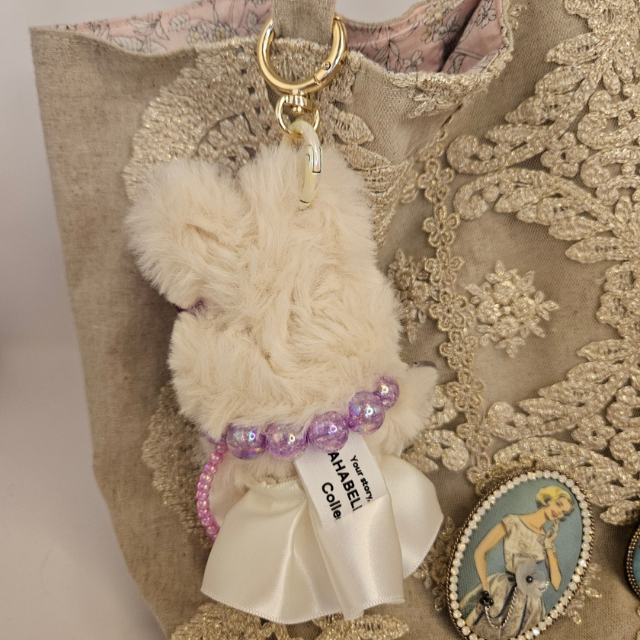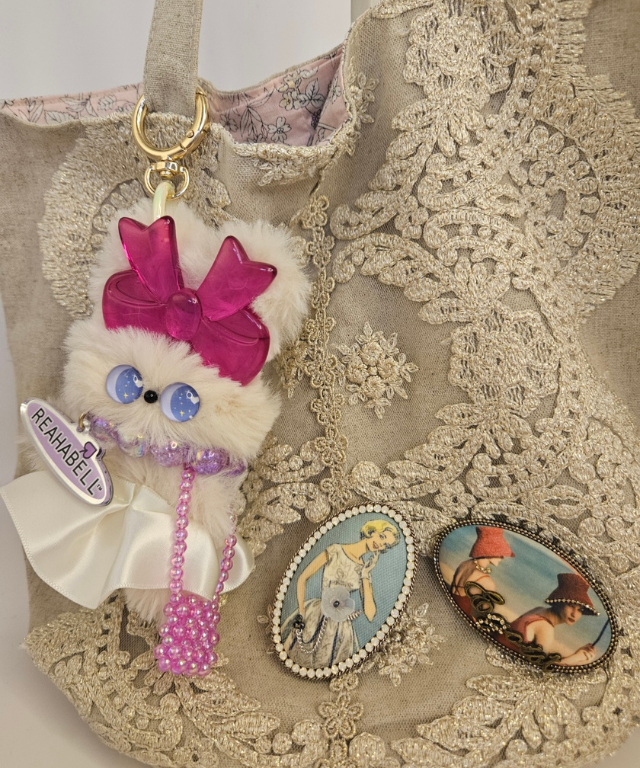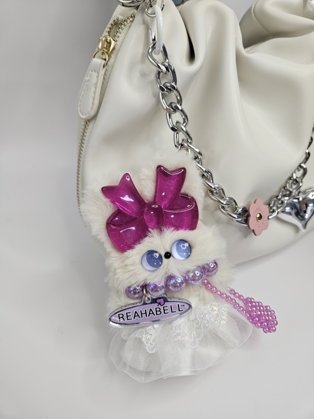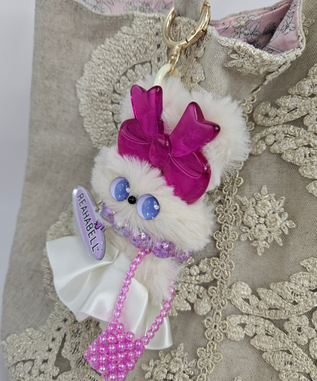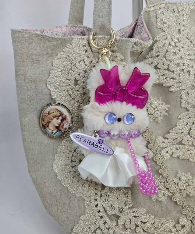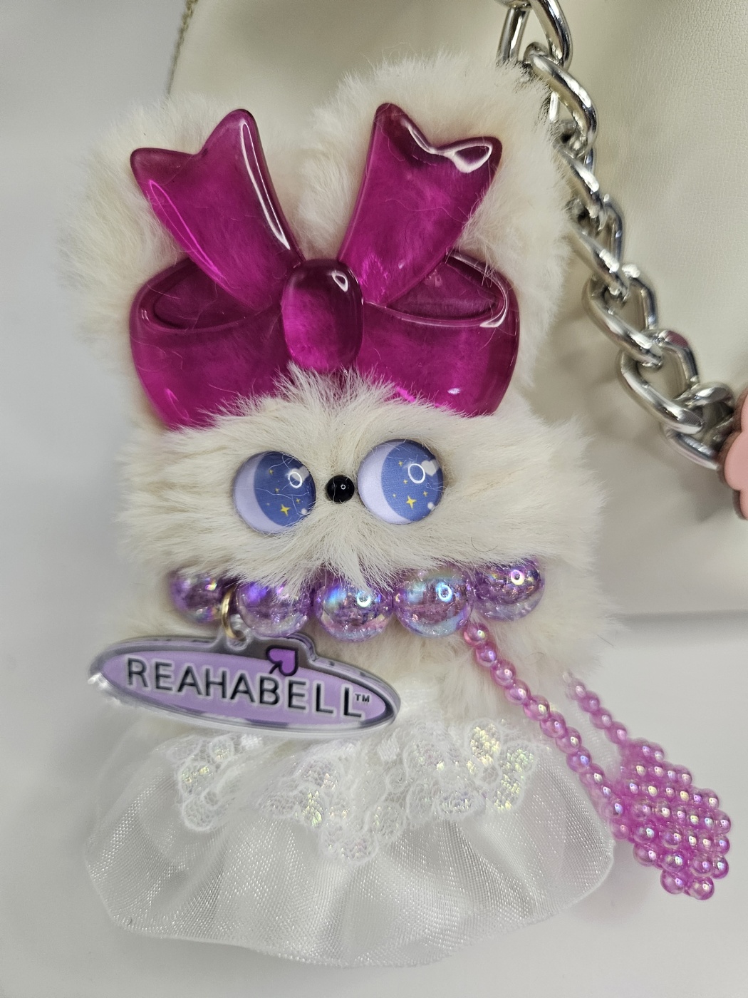 비즈가방은 래하벨 인형 목걸이에 걸려 있습니다.