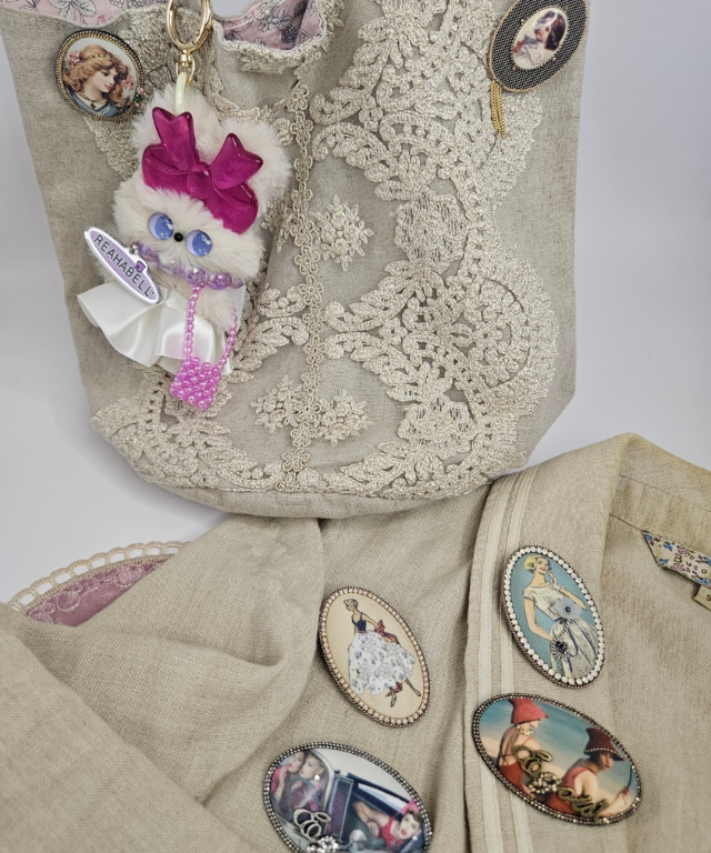 *고급 수제 린넨 가방과 크리스탈 아트브러치는